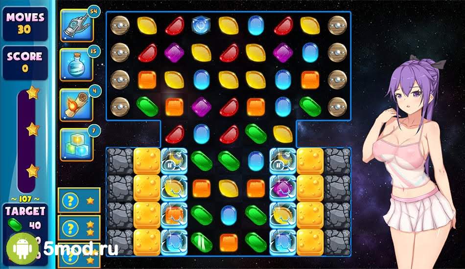 За управление отвечает всего один палец. С его помощью нужно передвигать красочные элементы и использовать бонусы. К слову, последних в игре очень много, они позволяют взрывать целые ряды и столбцы, а также убирать ненужные вам кристаллы с игрового поля. Если вы обожаете головоломки и при этом вам близко оформление в стилистике аниме с сексуальным подтекстом, то игра вам обязательно понравится.