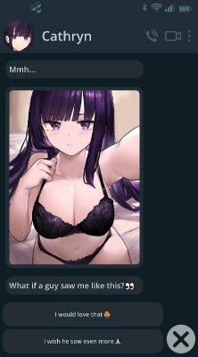 NTR Phone (18+) - проект для совершеннолетней аудитории игроков в котором весь геймплей выполнен в виде общения в мессенджере с разными девушками. Каждая имеет не только свою уникальную внешность, но и характер, предпочтения и интересы. Система выбора поможет направлять развитие диалогов по тем или иным направлениям, получать разные результаты и открывать новое. Есть и коллекционирование. Барышни будут делиться личными фотографиями и отчётами о своих похождениях. Качественная рисовка мультяшно-анимешного стиля, большое количество абонентов и масса откровенного контента порадует всех поклонников игр этой категории.