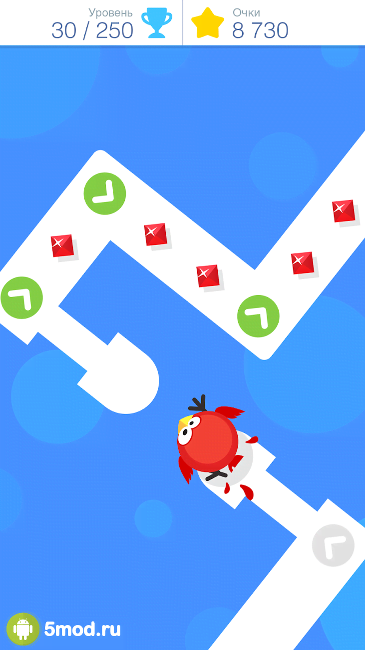 В момент движения нужно внимательно смотреть на клетки, по которым перемещается главный герой. Перед пропастями и поворотами вы будете видеть изображение кружка со стрелкой. Наступив на подобную клетку, нужно тут же нажать на дисплей, чтобы повернуть или сделать прыжок. Тут потребуется хорошая реакция и немного практики.