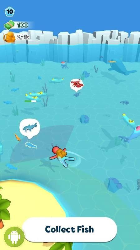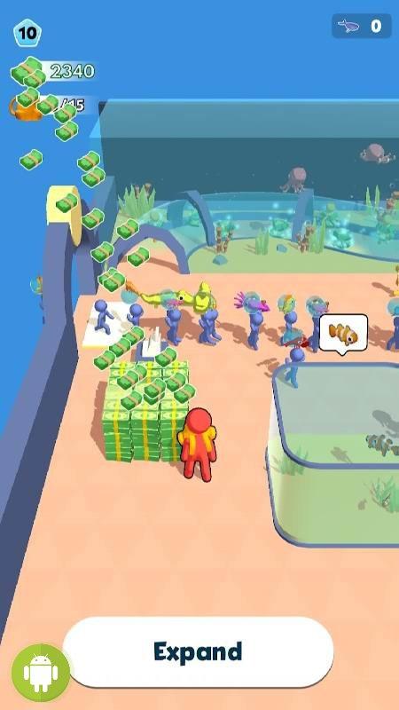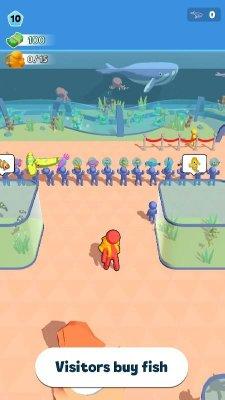 Деньги от продажи подводных обитателей следует тратить на расширение помещения, открытие новых аквариумов и прокачку персонажа. Вы также можете нанимать персонал, чтобы автоматизировать процесс ловли и использовать моторные лодки, заметно ускоряющие процесс.