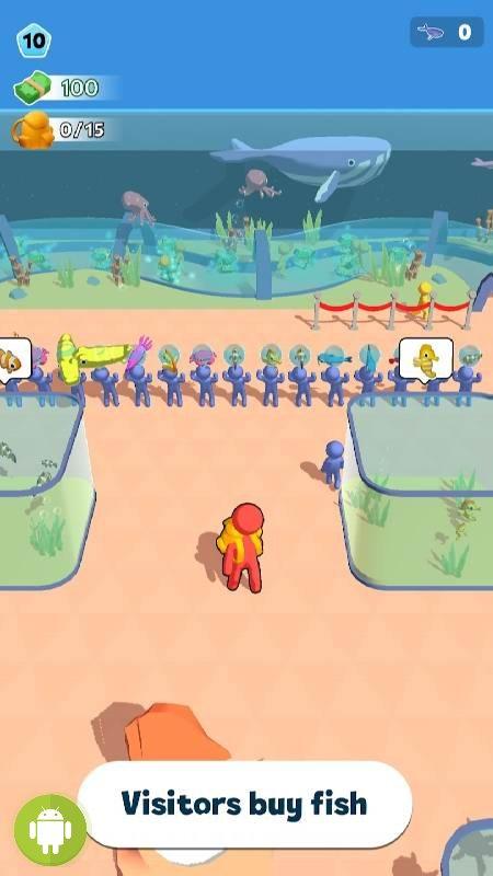 Начать предстоит с покупки первого небольшого аквариума, куда в дальнейшем будут помещены рыбы для продажи. Рыба клоун, черепашки, морские коньки и прочие подводные создания окажутся в вашем распоряжении. Прикупив парочку резервуаров следует отправляться на рыбалку, где нужно ловить все перечисленные виды существ и после помещать их в аквариумы, где они будут ожидать своих покупателей. Дельфины, скаты, медузы и прочие редкие виды морских существ попадут в аквариумы не для продажи, куда посетители смогут приходить и просто любоваться.