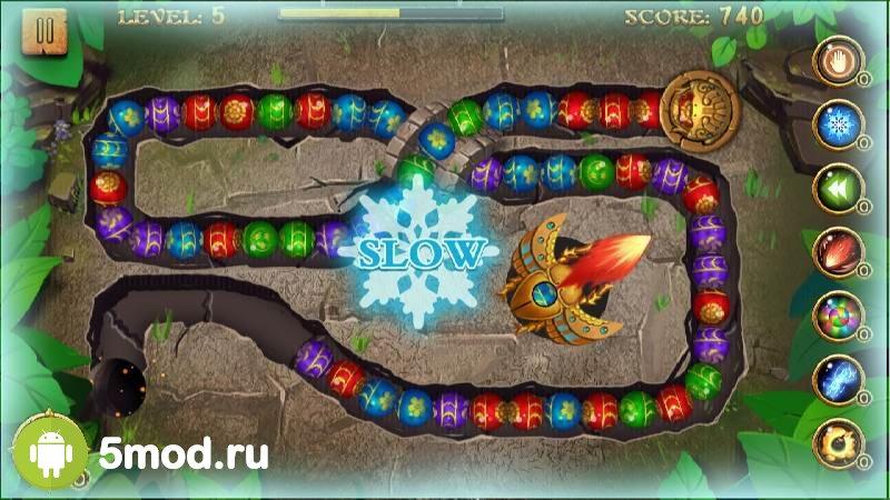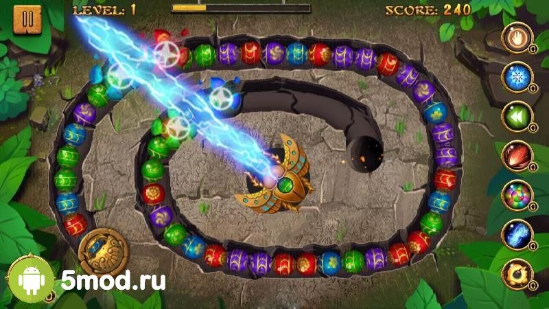 Jungle Marble Blast - классической механики и просто огромного количества уровней (хватит даже самым стойким и упёртым фанатам) аркада с симпатичной графикой ярких цветов. Традиционно нужно собирать шарики по три подряд одинакового цвета, создавать цепочки комбинаций, своевременно выбивать особые награды, а так же в случае необходимости применять бонусы. Чтобы выправить ситуацию и предотвратить проигрыш. Спектр спецприёмов более чем обширен. Так что можно их так же использовать согласно выбранной тактике действий на локации. Так что ценителям и поклонникам просто обязательно стоит обзавестись подобным развлечением.