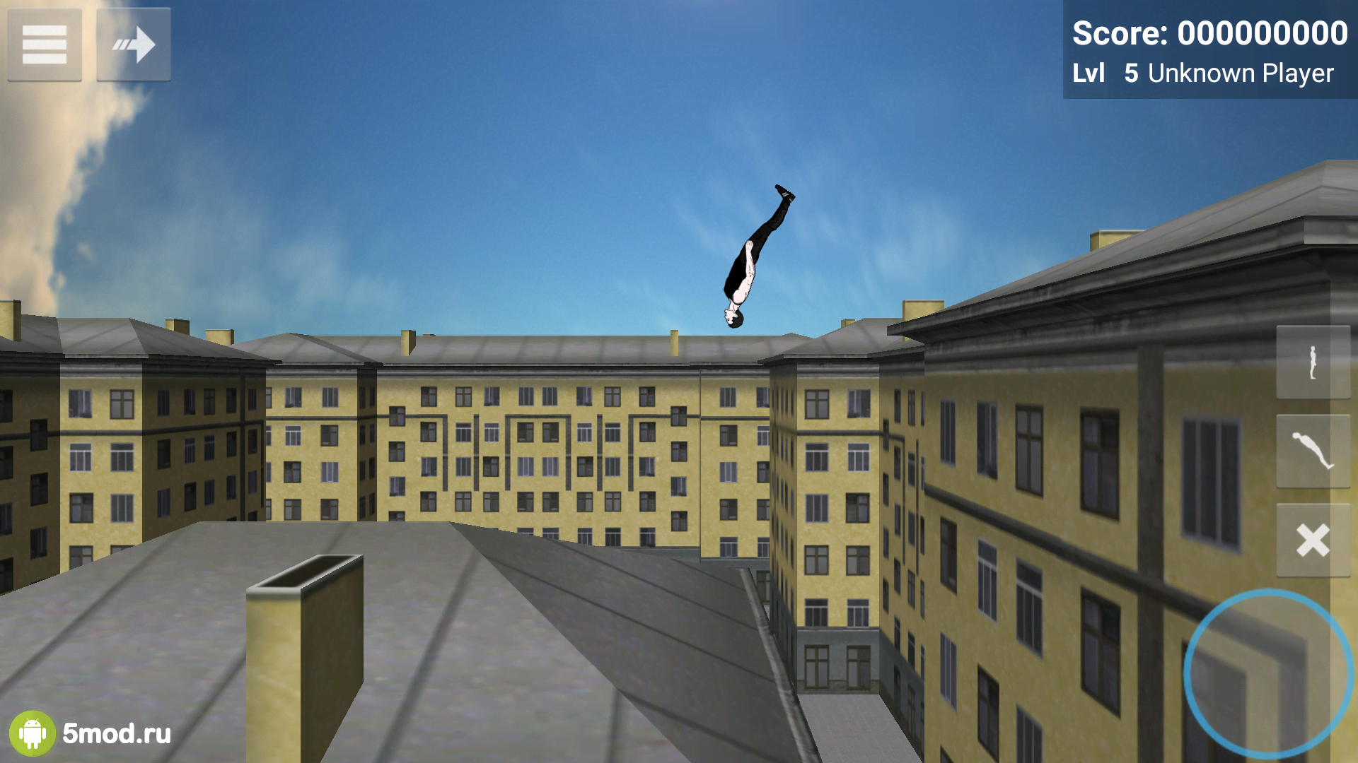 В игре доступно большое разнообразие локаций, например, начать игру предстоит со спортивного зала. Здесь мы будем делать сальто назад и дополнять их различными трюками, которые приносят дополнительную валюту. Естественно, на первых порах придется обучаться простым трюкам и сальто назад является самым распространенным среди всех. Постепенное прохождение игры открывает доступ к дополнительным и более сложным трюкам, совершать которые предстоит с огромных высот.