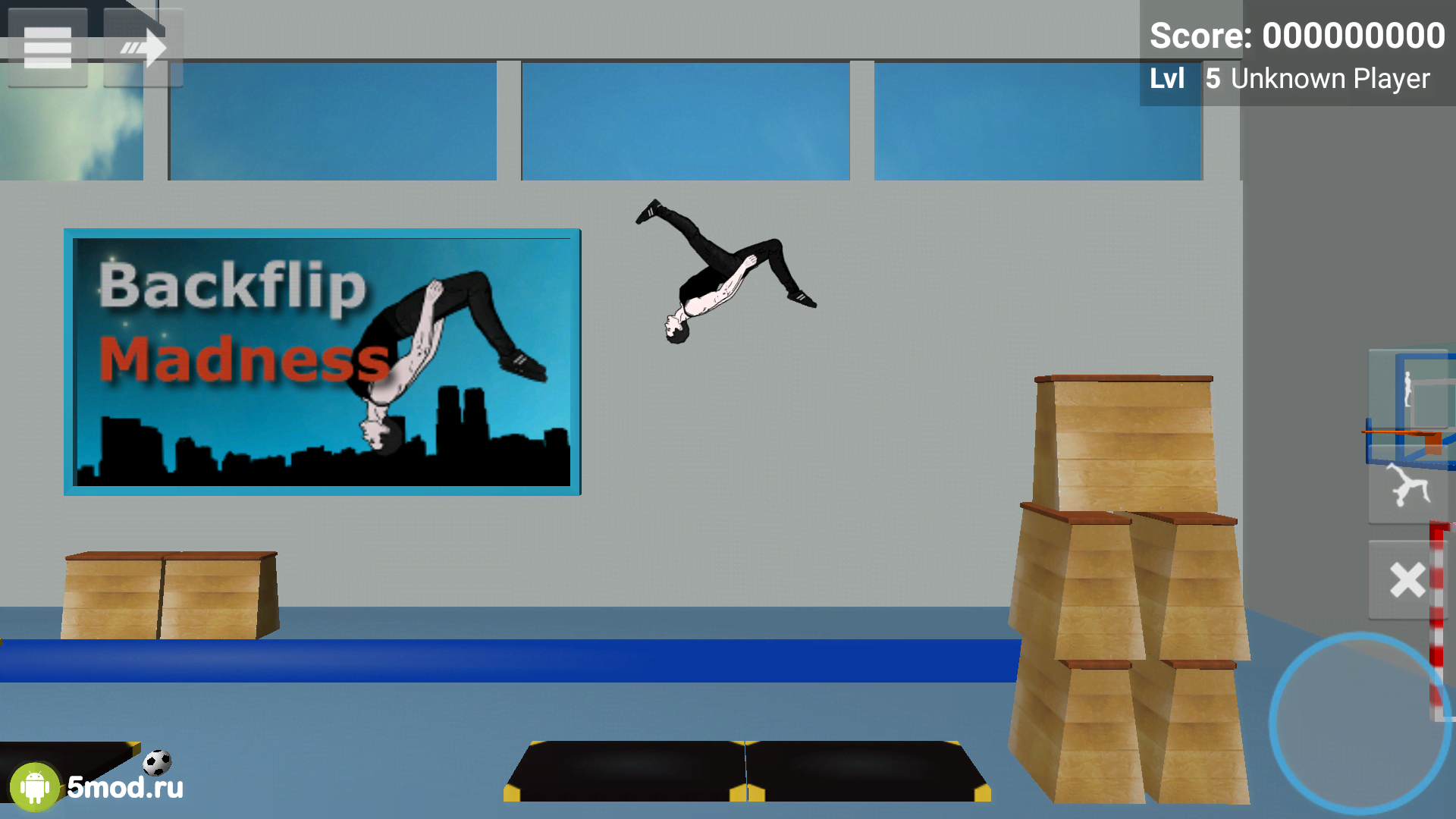 Backflip Madness - отличная аркада с хорошей, без лишних излишеств, графикой, проработанной физикой и управлением, что позволяет выполнять самые разнообразные трюки в роли гимнаста. От обычных акробатических кульбитов в условиях спортзала, до крайне опасных прыжков в городских декорациях. Нужно понимать, что жизнь и здоровье подопечного напрямую зависит от аккуратности и расторопности игроков. В противном случае переломы и смерть станут привычным явлением. Тренировки очень сильно помогут разобраться в возможностях персонажа и с первого взгляда определять получиться задуманное или произойдёт несчастный случай.