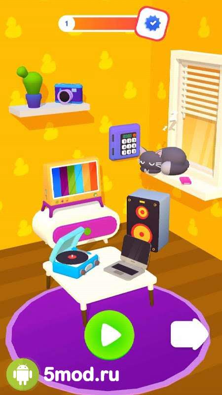 Каждый пройденный уровень позволит наполнять комнату декоративными предметами, мебелью и техникой. Заработанные монеты пойдут на прокачку комнаты и на открытие дополнительных элементов. В скором времени вы сможете разблокировать новое помещение больших размеров с новыми предметами и вещами, что увлечет вас на несколько дополнительных часов.