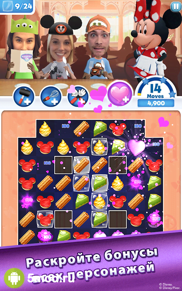 Disney Dream Treats - проект от Disney для всех возрастов в котором будет интересного проводить время всей семье. Весь игровой процесс крутиться около того, что геймерам стоит помочь знакомым и таким любимым персонажам подготовиться к празднику эпических размахов. А любой знает, что для этого необходимо очень и очень много сладостей и прочих вкусняшек. Они срочно отправятся в путь, чтобы вовремя успеть собрать нужное количество. Но ни кто не отменял соревновательного эффекта, а значит кто сделает дело лучше, тот и будет на первом месте в таблице лидеров. Симпатичная графика, классический геймплей и прочие особенности порадуют поклонников интересных игр.