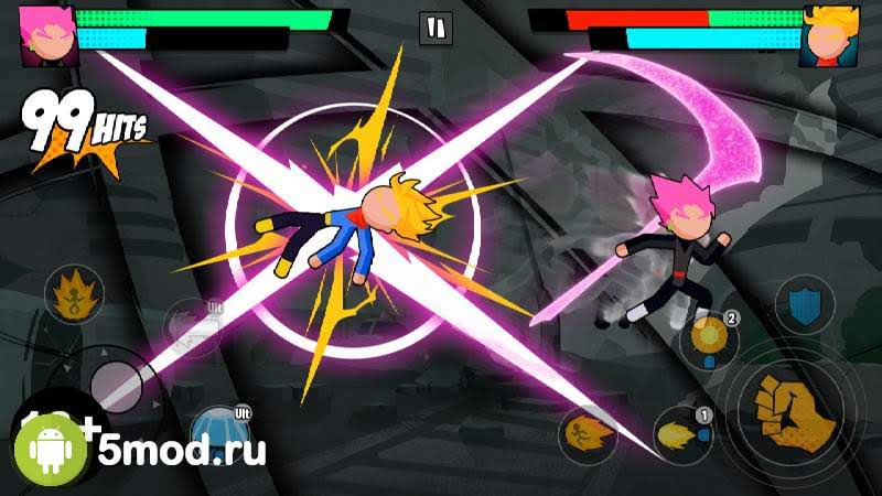 Управление и механика достаточно просты, нужно контролировать передвижения персонажа с помощью виртуального джойстика, а набор кнопок позволит наносить удары и использовать суперспособности. Чтобы одержать победу, нужно первым нанести смертельный удар по своему оппоненту, используя разные комбинации и способности. Последние бывают нескольких типов и каждую можно прокачать, чтобы повысить наносимый урон и уменьшить задержку между повторным использованием навыка.