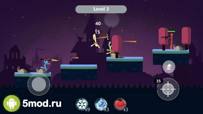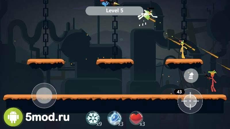 Рисованные человечки способны совершать затяжные прыжки, подбирать оружие и наносить мощные удары. Для победы на уровне, игроку придется ловко перемещаться по локации и не попадаться под вражеские кулаки и ноги. Кроме бит, ножей и острых клинков, в игре подготовлено огромное разнообразие огнестрельного вооружения. Тут вам и пистолеты, автоматы, дробовики и даже мощные пулеметы. Все это можно приобрести во внутриигровом магазине и начинать новый уровень с пушкой в руках, либо подбирать оружие, которое будет падать с неба прямо во время очередного побоища.