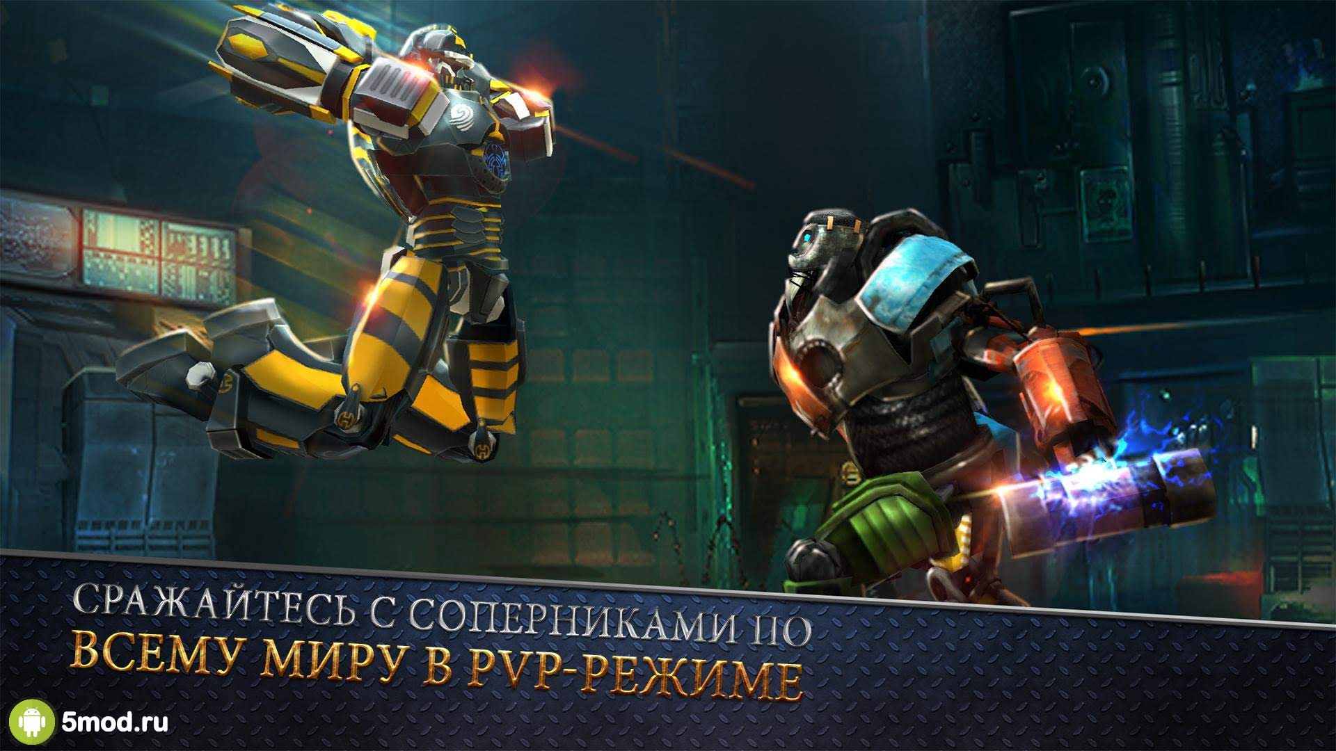 Real Steel World Robot Boxing - красивый, зрелищный и затягивающий файтинг про огромных роботов боксирующих на ринге. Проект был создан по мотивам нашумевшего в своё время фильма в жанре экшен. Сюжет рассказывал о мире недалёкого будущего в котором бокс среди людей запрещён. И на место спортсменов пришли роботизированные механизмы под управлением операторов. Вот и игрокам предлагается войти в эту индустрию и привести своего железного подопечного к вершинам славы и дракам за чемпионские титулы. Качественное исполнению всех до одного элементов геймплея и оригинальная концепция понравится всем ценителям захватывающих развлечений.