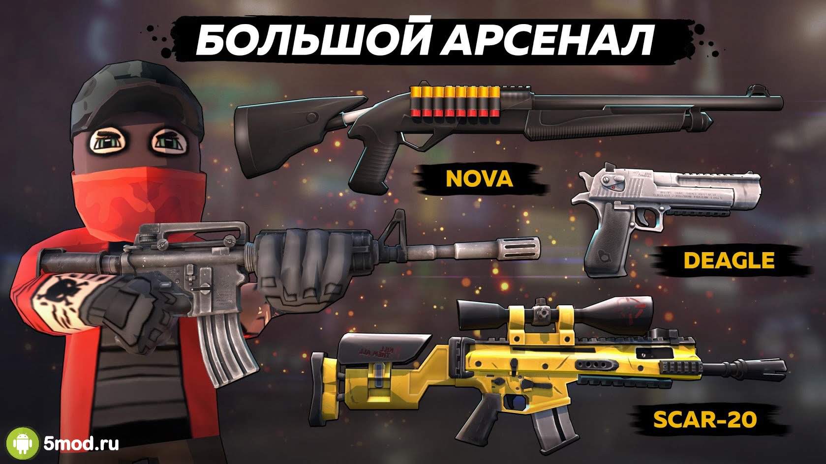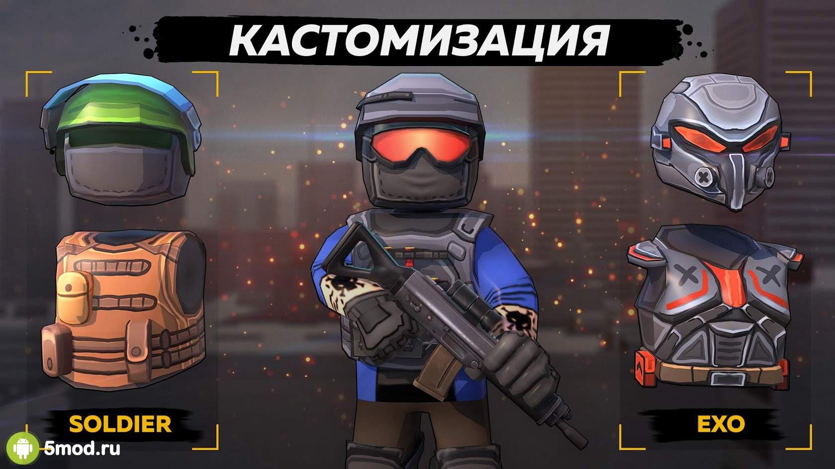 Независимо от выбранного режима управление останется прежним. То есть вам дадут виртуальный джойстик и набор кнопок. Старайтесь целиться точно в голову, чтобы нанести больше урона и заработать очки для себя и своей команды. Победители забирают не только рейтинговые очки, но и валюту. Тратиться она на открытие нового оружия и его кастомизацию, причем вы сможете полностью разобрать любимый пистолет/автомат и детально перекрасить его. Любите пострелять? Тогда эта игра точно вам понравится.