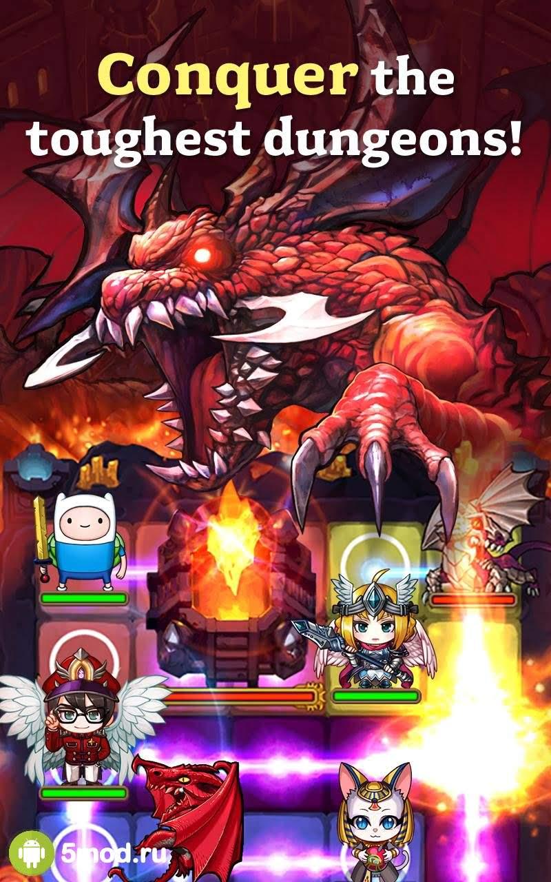 Dungeon Link - классная головоломка в которой используется классическая механика, но с красивой графикой, антуражем фэнтезийного мира, сражениями, противостоянием Добра со Злом и прочими аспектами, что более привычны для ролевых игр, а не для тренажёров для ума. А с некоторых пор на её просторах поселились и герои из культового мультсериала Adventure Time, что только добавило оригинальности и интересности игровому процессу. Собирайте коллекцию из уникальных персонажей, формируйте из них группы, изучайте специальные атаки, кооперируйтесь с другими игроками для рейдов на боссов и выясняйте кто же круче в PvP режиме.