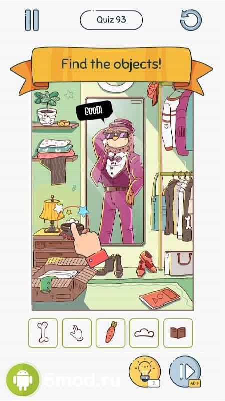 Уровни бывают самыми разными, к примеру, нужно найти кошку, для чего достаточно отодвинуть шторку и на окне вы увидите милого домашнего питомца. Где-то нужно разрезать объекты ровно посередине, кормить животных в соответствии с той едой, которую они употребляют в реальной жизни и многое другое. Задач много, они интересны и будут развлекать как взрослых, так и детей.