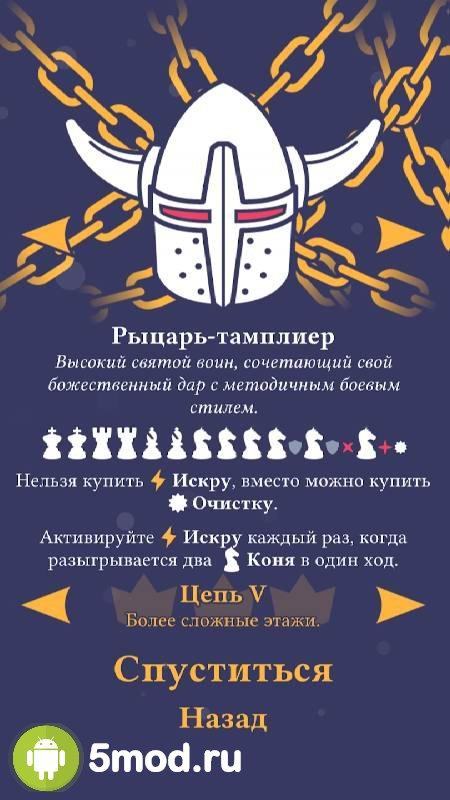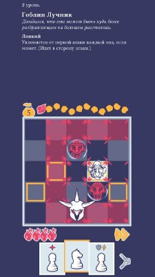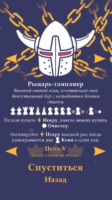 Необычный рогалик с элементами головоломки, где используется шахматная доска и все правила старинной настольной игры. Игра поделена на подземелья, где каждый раз игрок будет видеть шахматную доску. В распоряжении игрока окажется карточная колода с самыми разными шахматными фигурами. Подобраны они случайным образом, что в разы усложняет геймплей.