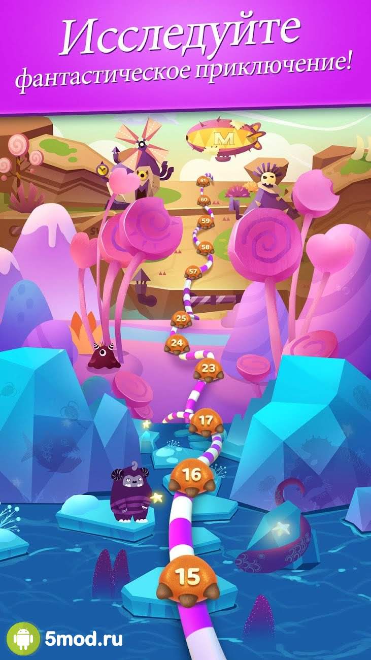 Munchkin Match: Magic Home Building - отличная головоломка с механикой "три в ряд" в которой игроки смогут насладиться не только любимым игровым процессом, но и весело провести время вместе с милыми монстриками. События развиваются в волшебном мире. Главный герой путешествовал на своём летающем корабле когда на него напал ледяной дракон. Негодник съел всё богатство Леми (а у него был огромный запас конфет и леденцов) и серьёзно поломал судно. Необходимо починить всё чтобы сломано, восстановить сокровищницу, а так же пригласить в гости массу других потешных персонажей.