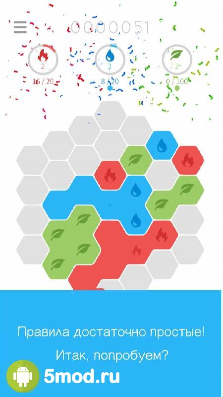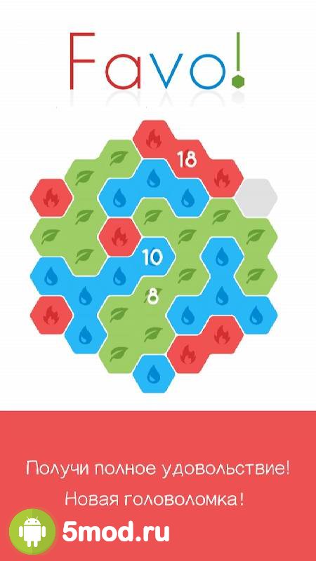 Favo - увлекательная, интересная и довольно оригинальная головоломка в которой игроки будут соединять вместе элементы одинакового цвета, получать за это очки и стремиться продолжать это делать как можно дольше. Для этого нужно будет не только правильно расставлять всё, но и своевременно применять особые плитки. Они помогут не только получить бонусы, но и освободить ценное пространство для более удачливой тактики на прежнем месте. Благодаря чему можно очень долго идти на рекорд. Ну, а симпатичная графика, анимация и большое разнообразие вариантов и элементов так же в списке положительных качеств этой игры.