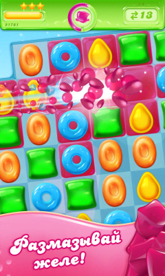 Candy Crush Jelly Saga - головоломка "три в ряд" от King продолжающая развивать культовую вселенную угощений. На этот раз геймеры вступят в противостояние с королевой Джелли. Мир желе и сладостей нуждается в защитнике и герое, так почему фанатам жанра не попытать свои силы в данной роли. Более 700 уровней ждут их впереди. Интересные условия, сложные ситуации, схватки с боссами, получение призов и открытие новых возможностей не даст оторваться от сочной и яркой картинки, а так же от стремления получить максимально продолжительную цепочку комбинаций для впечатляющего эффекта на счету.