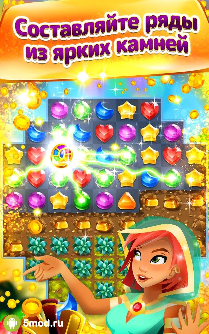 Genies & Gems – красочная головоломка в жанре «три в ряд», где нужно путешествовать по волшебным мирам и помогать героине по имени Дженни заниматься сбором монет.