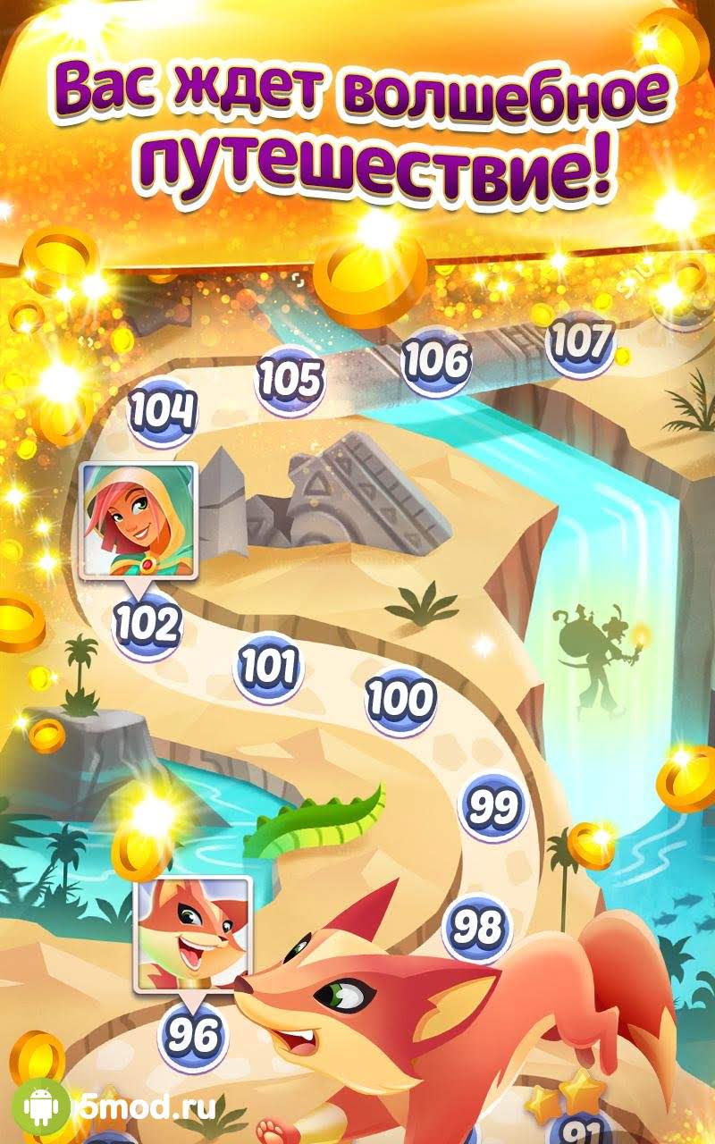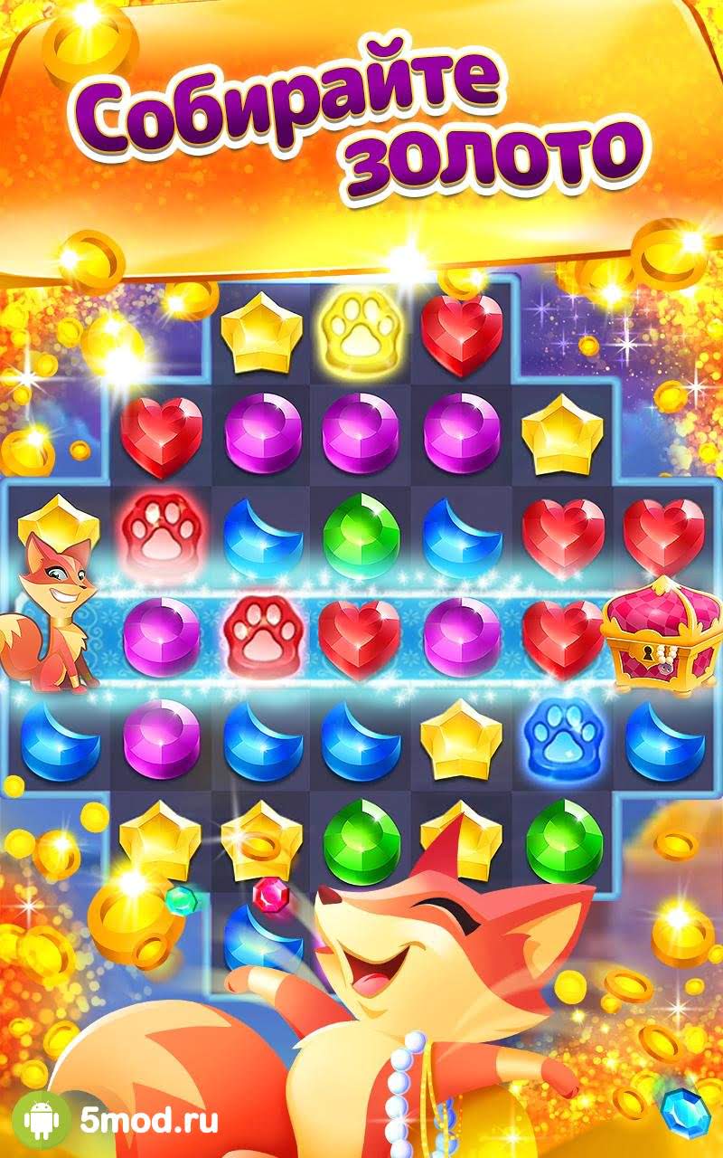 На первых порах вы будете помогать милому лесенку пробираться к сундуку, наполненному золотыми монетами. По всей локации будет простираться дорожка, которая выполнена из клеток. Чтобы лис начал своё движение, вам нужно уничтожить рядом стоящие с дорожкой элементы, собрав комбинацию из трёх одинаковых кристаллов и более. Если вам на пути попадётся бабочка и вам удастся подобрать её, то она автоматически очистит одну клетку пути, что позволит подопечному значительно быстрее добраться до заветной цели.