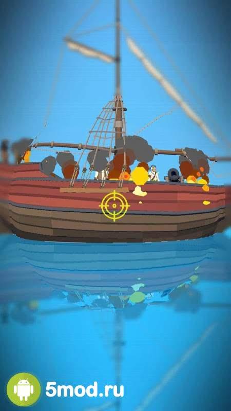 Игра поделена на уровни, в каждом из которых вам будет противостоять один или несколько враждебно настроенных кораблей. Геймплей выполнен в пошаговом формате, сначала атакуете вы, затем ваш оппонент. У каждого корабля есть определенный запас здоровья и как только он закончится вы тут же сможете перейти на следующий этап, главное не проиграть. В ваш ход вы управляете пушкой с помощью свайпов, стараясь навести прицел прямиком на отмеченную зону. Если попасть в центр, то вы нанесете максимальный урон и сможете расправиться с вражеским кораблем всего за пару выстрелов.