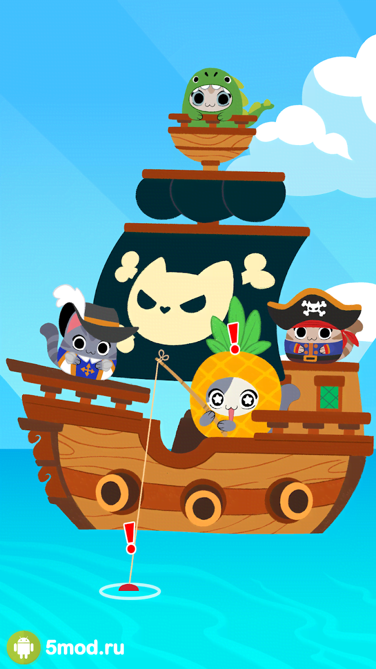 Sailor Cats - просто шикарный казуальный проект с превосходной графикой, милыми котиками на главных ролях, а так же увлекательными приключениями, различными событиями и конечно же захватывающей рыбалкой. А всё начнётся с того как одному кошаку застрявшему на необитаемом острове явится богиня и одарит его картонной коробкой и удочкой. Этого более чем достаточно для того, чтобы начать путешествие к неизведанным далям и заодно карьеру самого кавайного пирата во всех окрестных водах. Ловите рыбу, ищите сокровища, покупайте полноценный корабль, собирайте команду, сражайтесь с соперниками, побеждайте морских чудовищ и просто отлично проводите время.