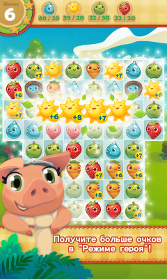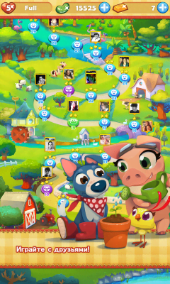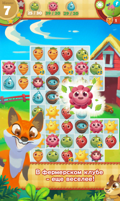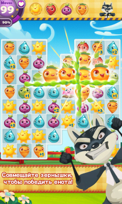Farm Heroes Saga - одна из самых известных и популярных казуальных игр от King в механике "три в ряд". Проект входит в знаменитую серию. Так что если понравилось это развлечение, можно найти и прочие, что раскрывают эту добрую и удивительную вселенную. Красивая графика, эффекты, разнообразие различных элементов и многое другое понравится фанатам только качественных продуктов. Они отправятся на ферму где им предстоит помочь местным обитателям избавиться от зловредного енота, что хочет забрать себе урожай, а всё что останется - испортить. Комбинируем объекты, получаем бонусы, применяем разные навыки, выполняем задания и многое, многое другое, что не даст заскучать на протяжении всех уровней.