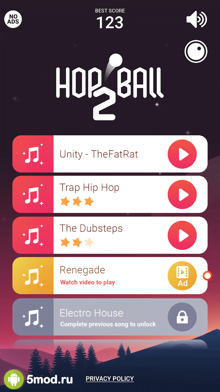 Hop Ball 2 - весьма сложная, если не хардкорная, музыкальная ритм-игра в которой игроки будут удерживать прыгающий мяч во время звучания определённых мелодий. При этом нужно, конечно же, не сбиваться с ритма, не пропускать мимо себя плитки, которых обязательно необходимо коснуться, а так же стараться создавать комбо. Они принесут большее количество очков, чем обычное прохождение. Но нужно понимать, что только постоянные тренировки дадут игрокам шанс на идеальное выполнение задачи. Так что рисковать следует будучи полностью уверенным в своих возможностях и качествах. Успех откроет новые горизонты и позволит провести многие часы с этим проектом.