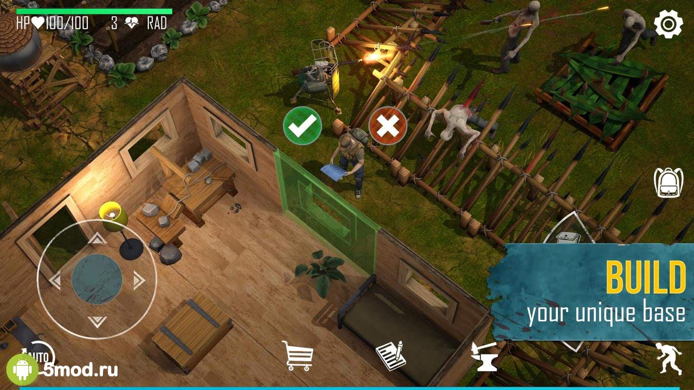 Игра включает в себя элементы симулятора и классических RPG, что позволяет прокачивать характеристики героя, открывать навыки и умения, путем уничтожения заражённых животных и людей. Управление стандартно для игр подобного рода, доступен виртуальный джойстик и набор кнопок. Стройте убежище, изучайте просторные локации, возводите стены и создавайте оружие, способное защитить вас и всех, кому потребуется помощь.