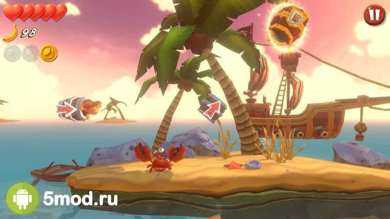 Во время прохождения очередной локации нужно будет собирать монетки, а также бананы, причем последние, влияют лишь на текущий опыт персонажа. Монеты позволяют менять внешний вид героя, а также приобретать предметы интерьера для дома Конга.