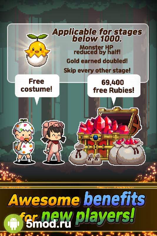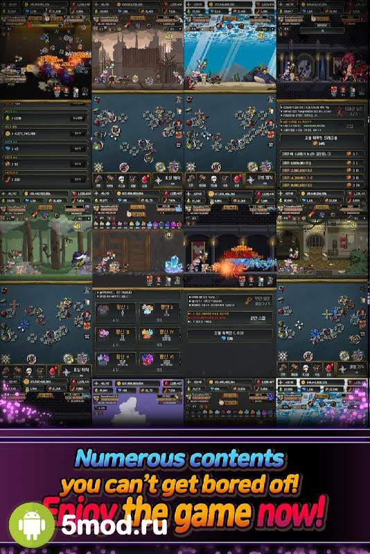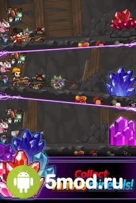 Игровое пространство можно разделить на две части: вверху вы увидите главного героя, который сражается с монстрами, а чуть ниже основной набор способностей, навыков и умений, которые предстоит изучать и прокачивать. Враги становятся сильнее уже после первого этапа, придется тратить накопленные средства на повышение уровня и открытия различных способностей.