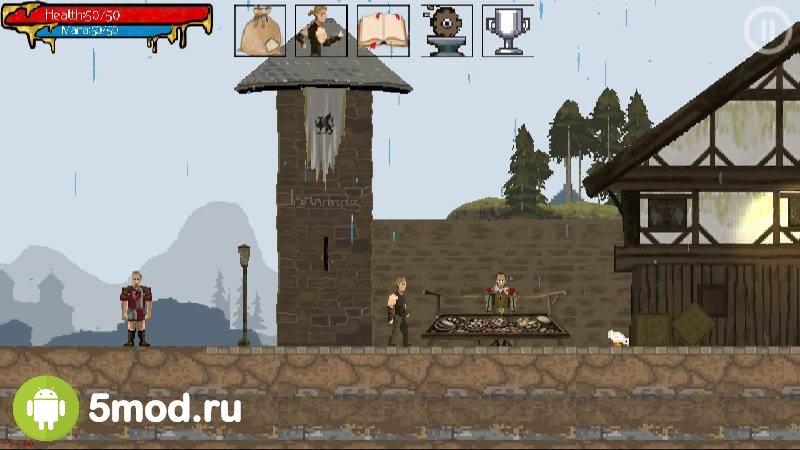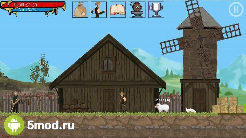 В качестве управления выступает привычный набор кнопок, разместившихся по краям дисплея. Они позволяют перемещаться вперед-назад, прыгать, атаковать врагов и открывать инвентарь с набором собранных ресурсов и скрафченных предметов. Вас ждёт детально проработанный мир, динамичная смена времени суток и погодных условий, крафт предметов, увлекательные битвы и торговля ресурсами и созданными предметами.