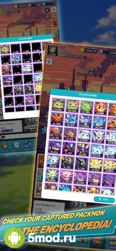 PackMon Idle:Trainer Simulator - развлечение для поклонников покемонов и прочих существ помогающих людям в быту и сражениях. Всё началось с того, что внезапно прибывшие монстры кардинально изменили прежнюю жизнь человечества. Чтобы спастись и защититься они вынуждены были адаптироваться и начать приручать незваных гостей. Чтобы направлять их в бой против других же созданий. Каждый из персонажей имеет свои характеристики и качества, уникальные способности и определённые факторы. Которые следует комбинировать между друг другом для получения максимально мощного и разрушительного результата.