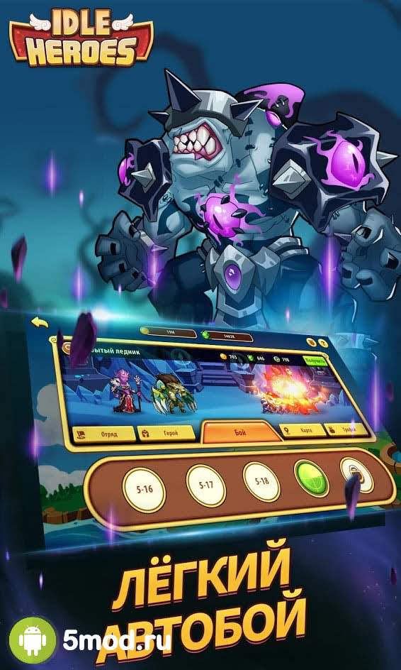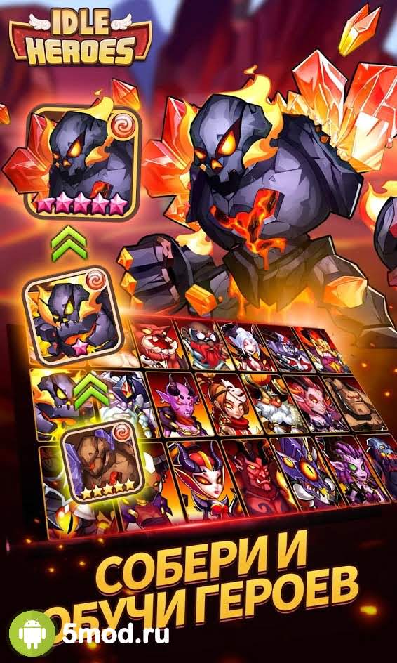 Idle Heroes - отличный ролевой проект с элементами кликера. Бесконечный игровой процесс, коллекционирование карт, автономное поведение героев в отсутствие игроков, а так же красивая графика и нескучный геймплей стоит опробовать всем поклонникам весёлых развлечений. В их распоряжение будет более 200 юнитов. Правильно комбинируя их свойства, навыки и таланты можно получать уникальные тактические возможности, что сметут любого противника с их пути. Это пригодиться во время выполнения заданий, PvP сражений на аренах и войнах гильдий.