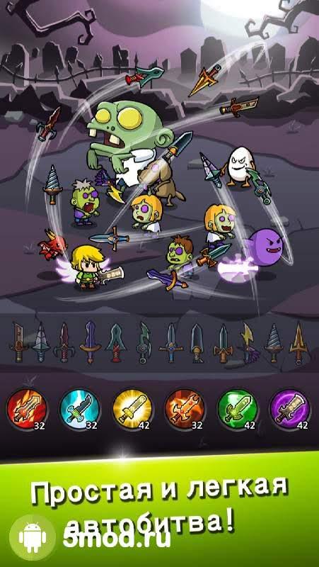 Каждое нажатие на экран позволит нанести урон по одному из монстров. Они все располагаются на локации и двигаются в хаотичном порядке. Персонаж быстро перемещается между целями и наносит сокрушительные удары острым мечом. Выпадающие из врагов монетки вы будете тратить на улучшение главного героя, прокачку его показателей и изучение навыков. Кроме того, можно вырастить питомца, дракона, который в автоматическом режиме будет атаковать всех, кто встанет у вас на пути. Естественно, не обошлось без клинков, которые будут летать по уровню и атаковать врагов. Всё это можно прокачивать и улучшать по многу раз, пока вы не достигнете максимального уровня.