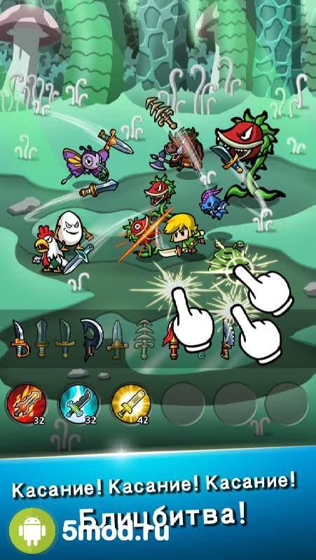 Сказочное королевство атаковано летучими мышами, гоблинами, орками, ядовитыми растениями и прочими мифическими созданиями. Отважный рыцарь вызвался уничтожить монстров и встать на защиту стен королевства. Отправляйтесь в лес и начинайте крушить врагов, быстро нажимайте на экран и не оставляйте врагам ни единого шанса.