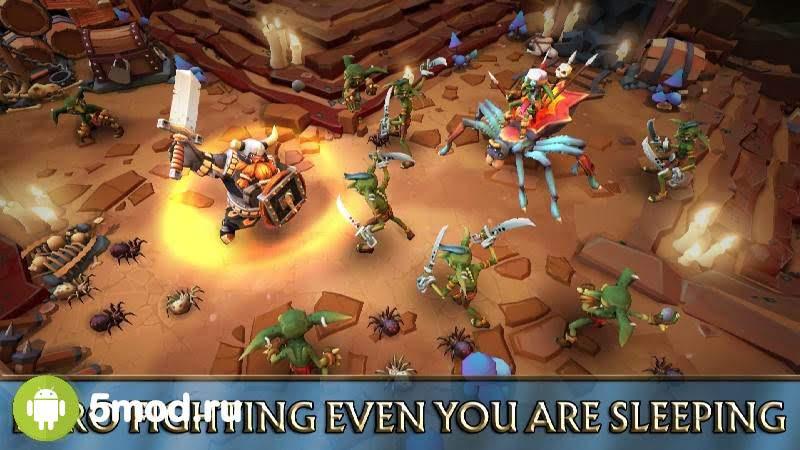 Герой самостоятельно принимает участие в битвах, он также способен передвигаться и находить сокровища, оружие и ценные предметы. Вам даже не обязательно нажимать на экран, чтобы одолеть всех монстров, но для ускорения этого процесса, периодически всё же можно тапать по дисплею. Орки, гоблины, пауки, каменные великаны, летучие мыши и прочие монстры встанут на пути протагониста. После каждой десятой встречи с врагами, придется биться с боссом. Они значительно превосходят по силе своих предшественников и заставят вас попотеть.