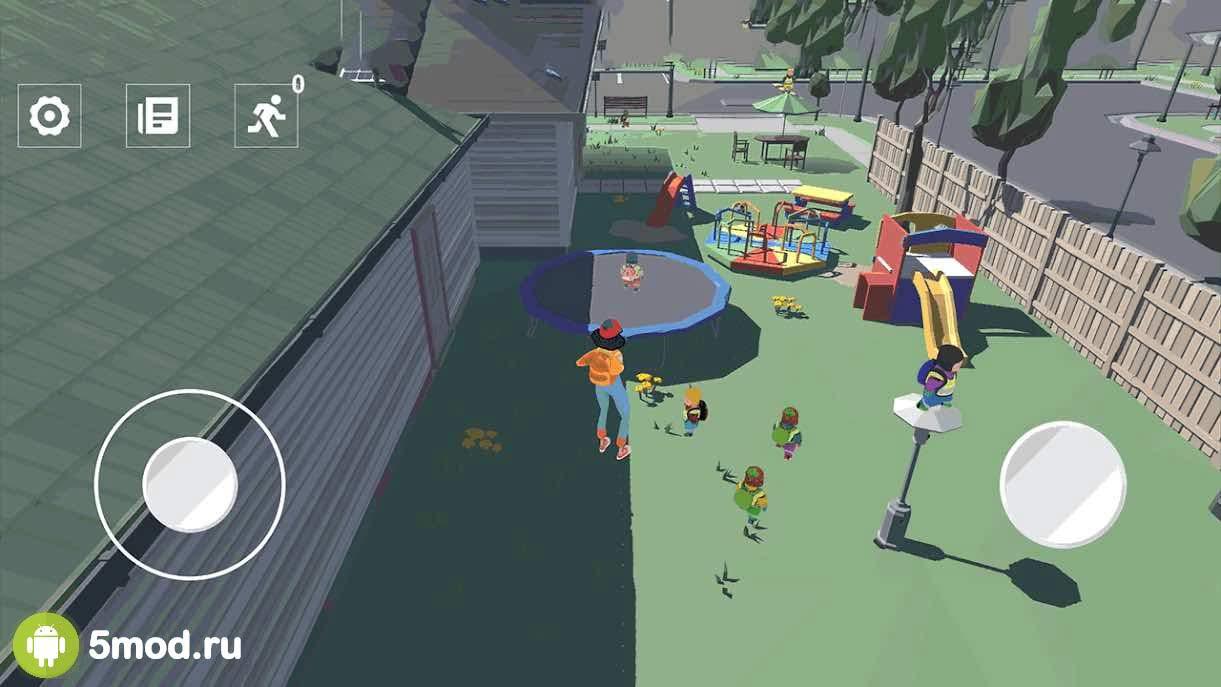 Всё, что может делать главная героиня – это двигаться и подбрасывать малышей, тем самым взаимодействуя с объектами на локации. Не волнуйтесь, они не пострадают, а будут рады вернуться к преподавателю и следовать за ней, куда бы она не направлялась. Чтобы управлять главной героиней вам нужно использовать виртуальный джойстик, а кнопка с правой стороны позволит швырнуть одного из подопечных.