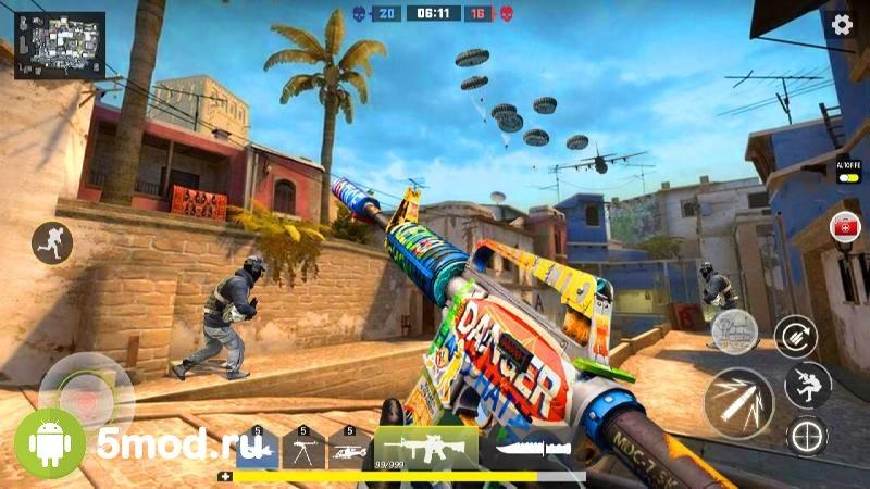 Real FPS Shooting Games - шутер от первого лица строящийся по всем канонам и заветам данного жанра. Так что поклонники жарких перестрелок и эпических приключений на узких улочках во главе своей команды будут более чем довольны представившейся им возможностью. Кроме всего озвученного у них так же будет доступ к арсеналу вооружения. Разнообразие стволов и амуниции позволит идеально подготовиться к дальнейшим событиям. Ну а дальше всё зависит от того, насколько хорошо геймеры умеют управляться с виртуальным оружием. Впереди у них увлекательные ситуации, напряжённые дуэли и очень приятные победы.