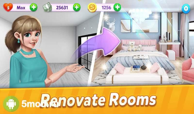 Заработав денег, вы сможете купить новую мебель, подобрать цвет для стен, потолка и изменить напольное покрытие. Ваша цель проста – сделать неповторимый дизайн комнаты в зависимости от ее функционала. Следует учитывать все потребности и аспекты текущего помещения и дополнять его интересными образами. В игре очень красивая мультяшная графика, большой выбор предметов кастомизации, знакомый геймплей и десятки интереснейших уровней. Станьте дизайнером и воплотите свои задумки в реальность.
