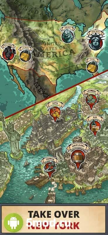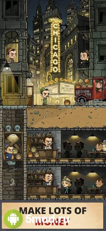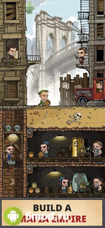 У вас будет много способов, чтобы заработать деньги: вино, азартные игры, изготовление фильмов, продажа табака и многое другое. Копите деньги, открывайте новых производственные средства, улучшайте ваши постройки и прокачивайте героев, которые играют огромную роль в создании лучшей мафиозной империи в мире.
