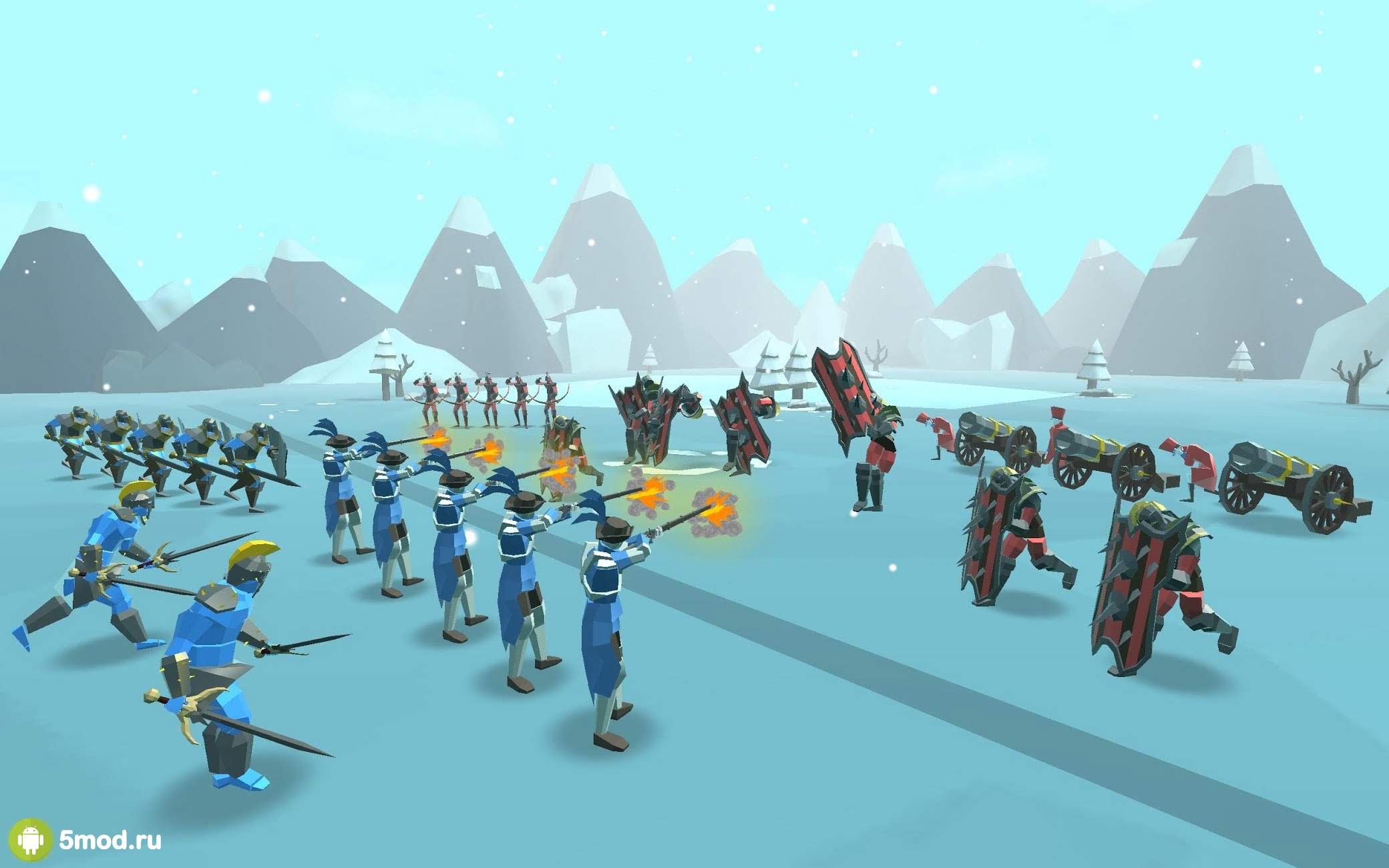 Действия, которые вы выполните перед началом сражения играют самую главную роль, так как после старта битвы вы сможете лишь наблюдать за всем происходящим на поле боя. Для вас подготовлено несколько десятков типов воинов, куда входят как обычные рыцари, гладиаторы, лучники, мушкетеры, щитоносцы, так и самые разные орудия. Все они имеют определенную цену и набор уникальных характеристик, поэтому, тратьте деньги с умом, чтобы вам хватило на следующую битву. Как только начнется битва, вы сможете лишь менять камеру и угол обзора, подбирая идеальный ракурс.