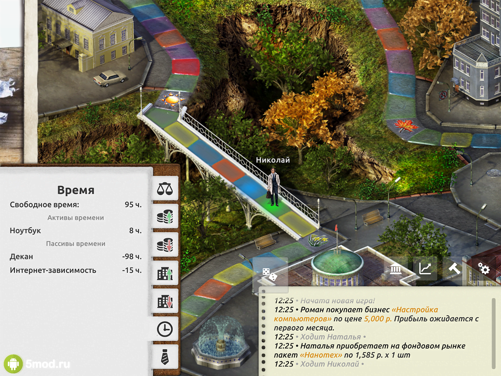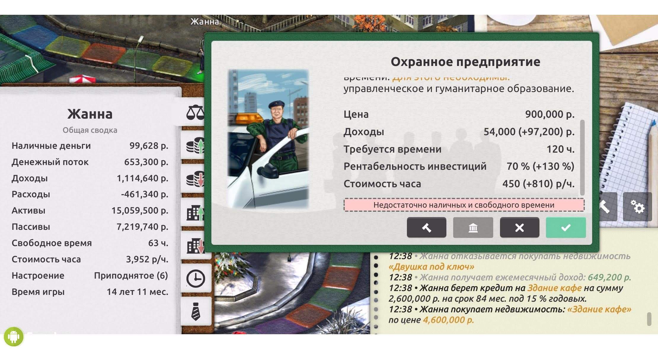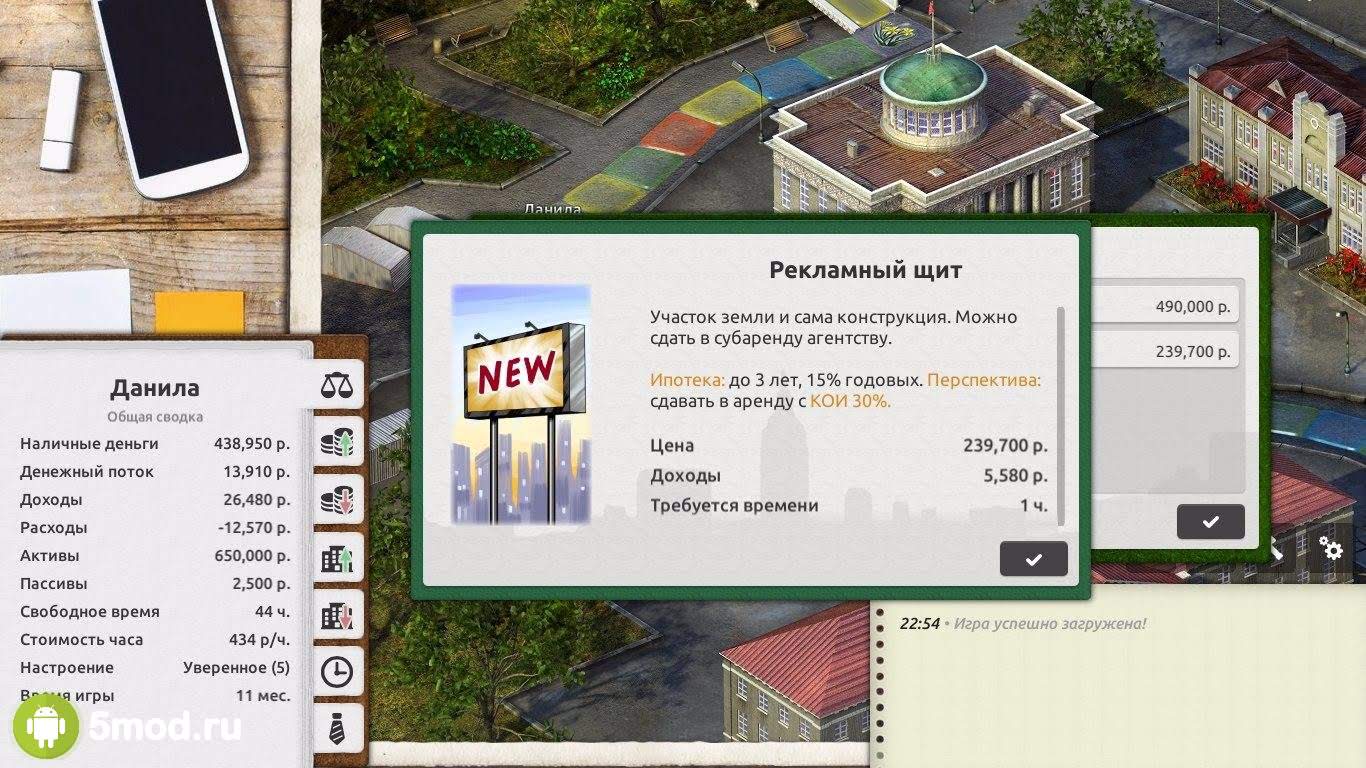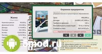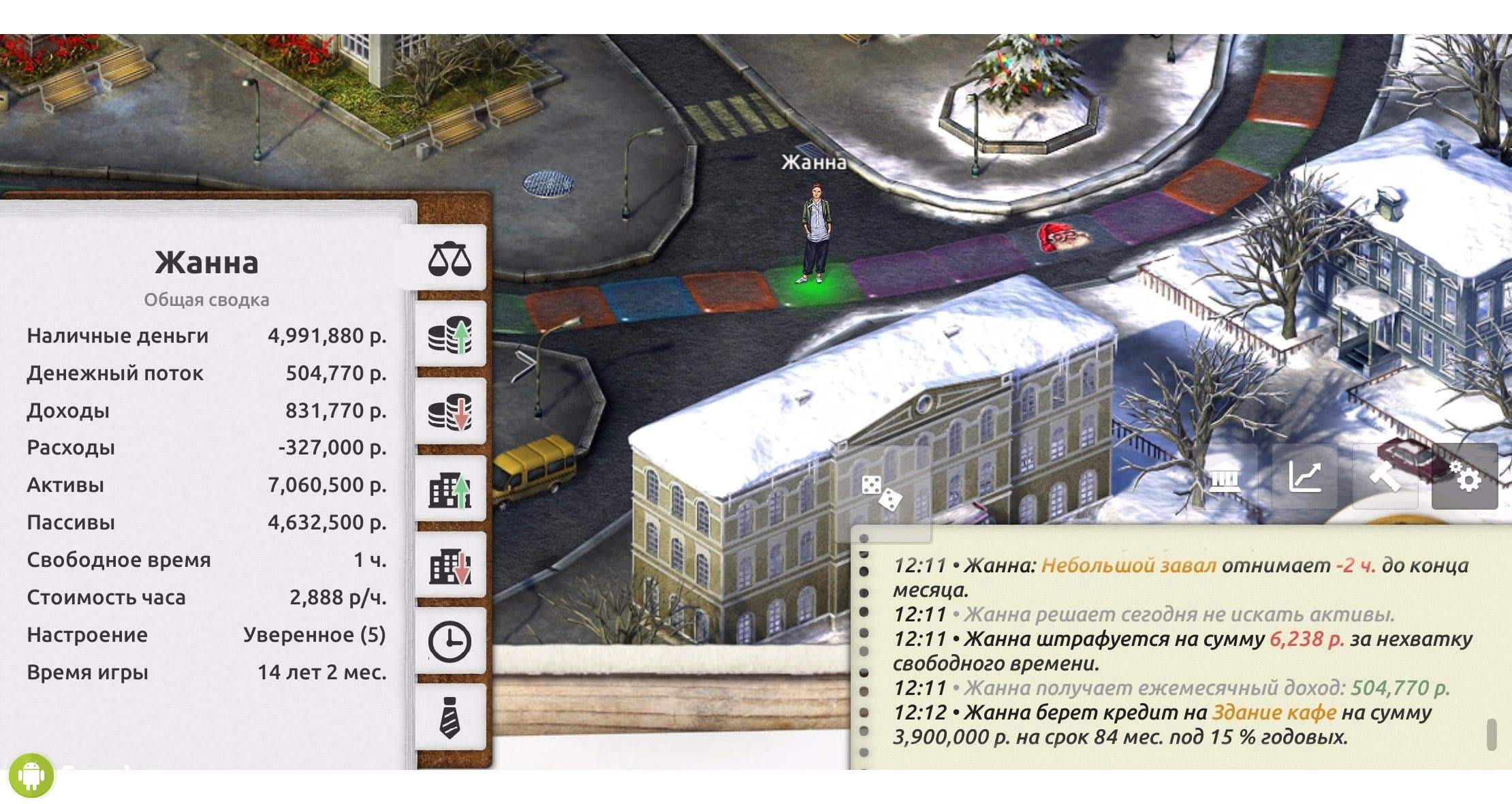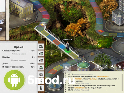 Управлять временем не так просто. Игра подскажет, как это делать максимально грамотно и полезно. К тому же, вы сможете попробовать совершенно разные способы заработка денег. Для победы в игре вам понадобятся сбережения, причем не пару тысяч, а несколько миллионов. Кроме того, необходимо иметь постоянный пассивный доход, способный обеспечивать вас и ваш бизнес, когда основной денежный поток заканчивается. Используйте всех доступных персонажей, каждый из которых обладает уникальной профессией, может обучаться, знакомиться и выполнять сложные жизненные квесты.