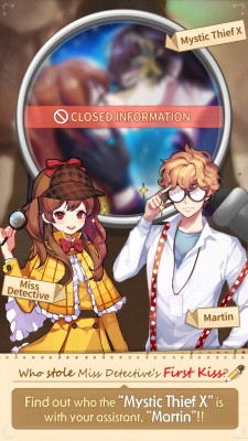 Miss Detective's Undercover - интерактивный романтический симулятор детективного расследования. Главная героиня стремиться стать полицейской и постоянно пытается поучаствовать в различных мероприятиях, что чреваты последствиями. Во время одного из таких дел она сталкивается с таинственным Мистером Х. Который не только совершил преступление у неё на глазах, но и совершенно наглым образом целует её. Такое просто так оставлять нельзя и наша подопечная начинает собирать улики. Под подозрение попадает сразу несколько молодых человек. Каждый из них уникален по своему и что-то скрывает. Но кто же из них преступник? Это геймерам и предстоит выяснить.