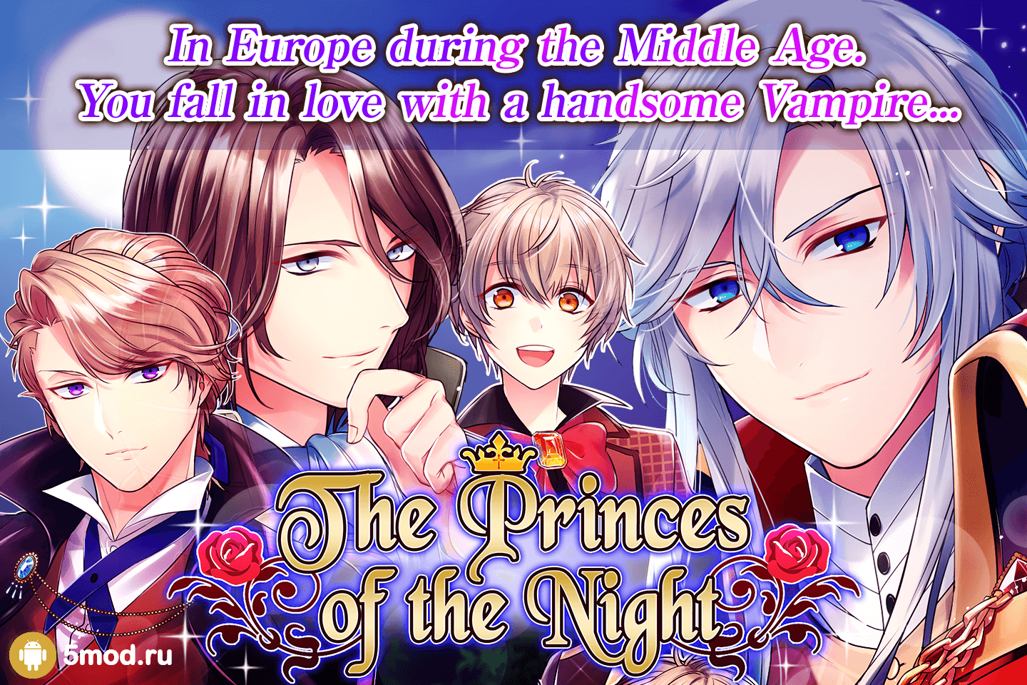 The Princes of the Night : Otome games dating sim - симулятор отношений с крайне милой романтической историей в духе классический манга/аниме произведений. Фанаты жанра по достоинству оценят возможность лично поучаствовать в нечто подобном. Действие развивается в средневековой Европе, в одном из крупных городов. Череда загадочных убийств женщин всколыхнуло население. На шее жертв найдены следы клыков, а тела практически обескровлены. Неужели вампиры существуют? Это вскоре и предстоит выяснить главной героине, что волей судьбы оказалась в эпицентре внимания сразу нескольких могущественных сил и фракций.