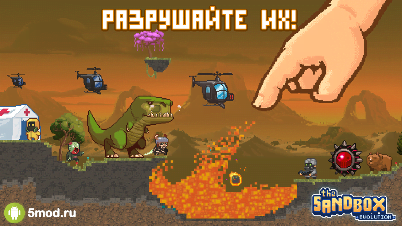 The Sandbox Evolution - крутой пиксельный симулятор в котором игрокам предлагается могущество бога. Они смогут по своему желанию создавать и разрушать миры, придумывать существ, заселять ими территории, а после ронять на них метеорит разрушающий все. Пробуйте себя в этой реальности, перемещайтесь в фэнтезийную составляющую, или же просто не ограничивайте себя какими-либо границами и делайте всё что хотите. Творите, стирайте и снова творите. Простое управление, разнообразие возможностей для творчества, наличие PvP-шной составляющей и многое другое порадует всех ценителей качественных и долгоиграющих развлечений. Ну а кампании и ежедневные задания не дадут забросить игру даже тем кто уже всё попробовал.