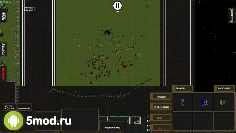 Наблюдать за сражениями и поведением людей и зомби мы будем с видом сверху. В распоряжении игроков окажется большой выбор инструментов, которые позволяют: возводить самые разные сооружения, дороги, инфраструктуру, строить военные объекты, размещать зомби и людей на локациях, а также наблюдать как противоборствующие силы сражаются друг с другом. игра обновляется достаточно часто, в нее добавляют новые инструменты и игровые элементы, которые значительно улучшают геймплей.