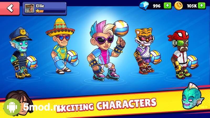 Победы в матчах приносят специальные паки, в которых можно найти эксклюзивные предметы, карточки с персонажами и дополнительную игровую валюту. Открываются они бесплатно в течение определенного времени, либо за алмазы. Все персонажи уникальны как внешне, так и приемами, а дополнительно можно прокачивать характеристики спортсменов и приобретать усилители. Последние позволяют временно замораживать оппонентов, наносить сокрушительные удары и ускорять подопечного.