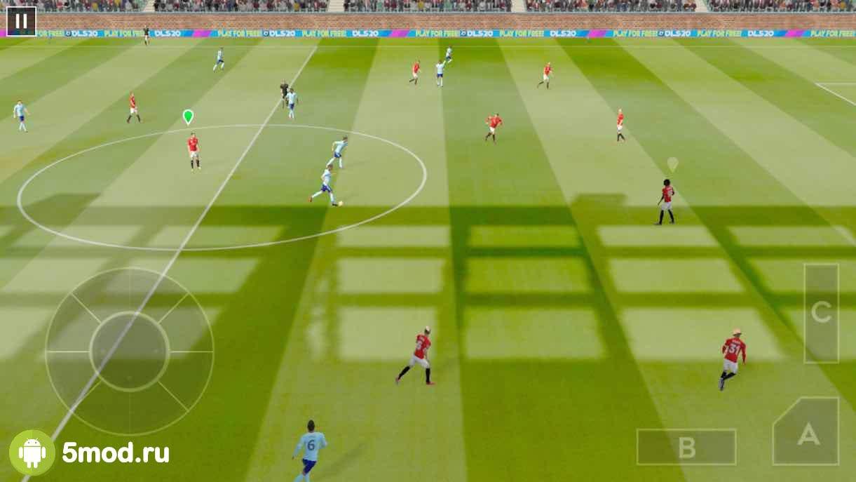 В вашем распоряжении окажется полноценная футбольная команда, где можно выбирать тип и способ тренировки, продавать или покупать отдельно взятых футболистов, нанимать работников для клуба и не забывать про футбольные матчи. Последние, являются основой игрового процесса, где необходимо за отведенное время забить больше голов, чем сможет сделать ваш оппонент. Виртуальный джойстик позволит передвигаться по полю, а кнопки справа отвечают за удары, пасы, навесы и подкаты.