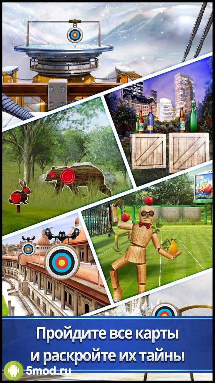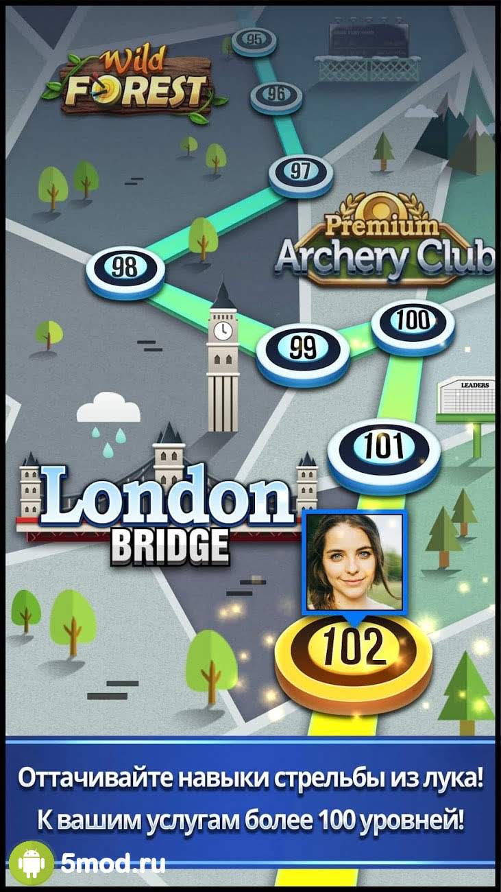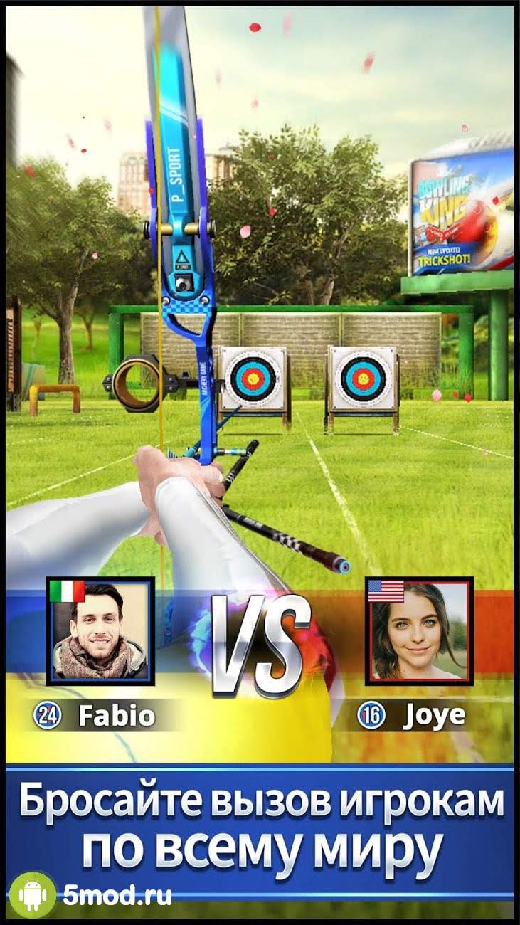 Выбрав интересующий вас режим, вы сможете взять в руки лук и начать стрельбу. Нажав на экран, вы сможете приблизить мишень, что позволит сделать более точный выстрел и угодить прямиком в десятку. Соревнования между реальными игроками проходят в три раунда, где побеждает тот, кто сумеет набрать больше очков, чем его оппонент. Победы приносят очки опыта, повышающие общий уровень, а также монетки и баксы.