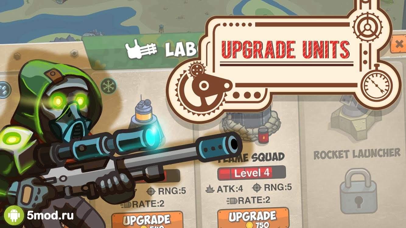 Каждая боевая единица может быть улучшена, причем несколько раз, увеличивая количество здоровья и наносимого урона. Деньги, которые вы заработаете за пройденные уровни, можно потратить на покупку не только новых башенок, но и бонусов, наносящих урон по области, замораживающих или отравляющих врагов. У игры очень приятная стилистика, огромный набор уровней, башен и простое управление, что не даст вам скучать.