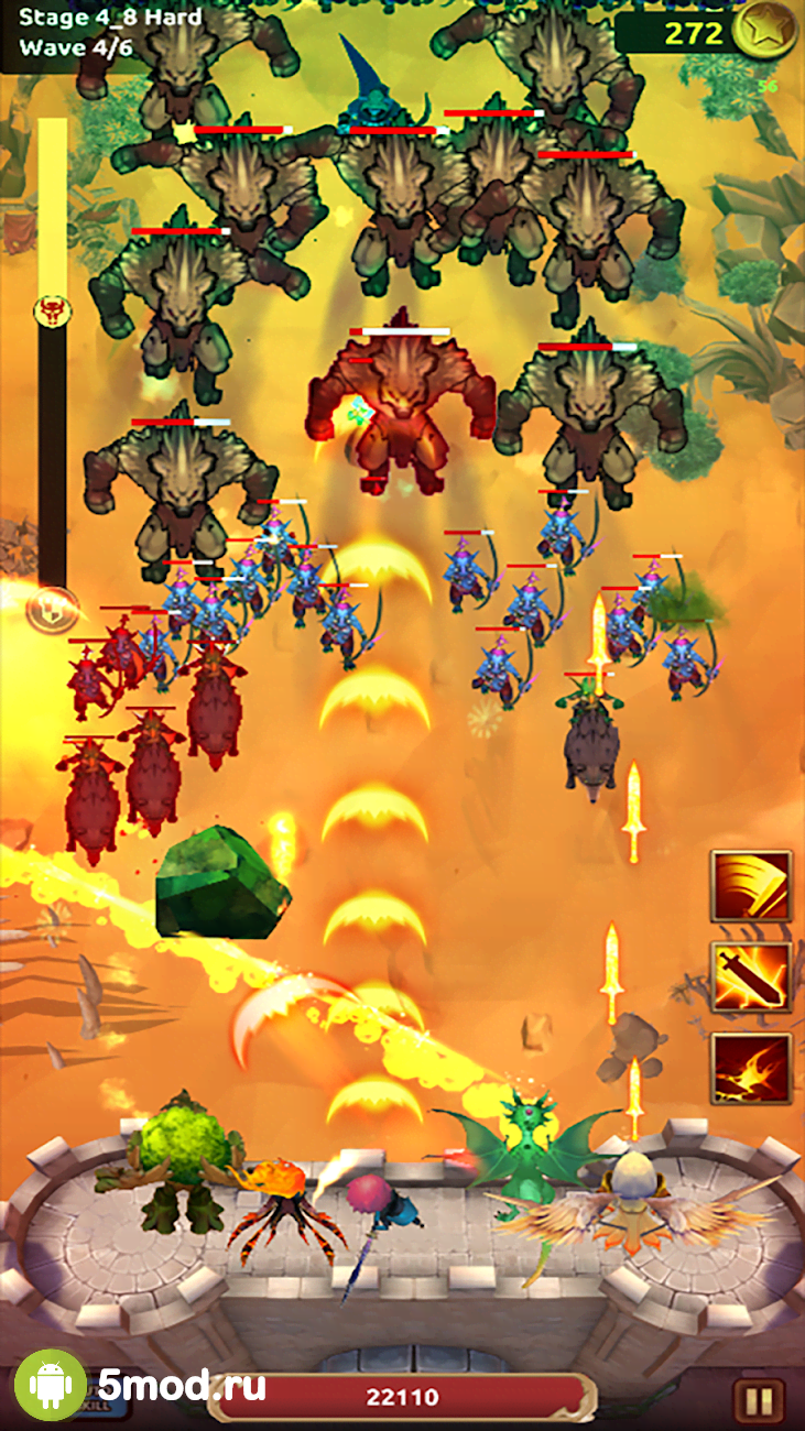 Игра разделена на несколько десятков этапов и на каждом нужно успешно зачистить локацию от монстров. Успешное выполнение задачи позволит заработать монет и кристаллов. Они пойдут на приобретение новых персонажей и их улучшения, изучение навыков и открытие дополнительных способностей. В игре нет русского языка, но разобраться во всех тонкостях игрового аспекта не составит никакого труда.